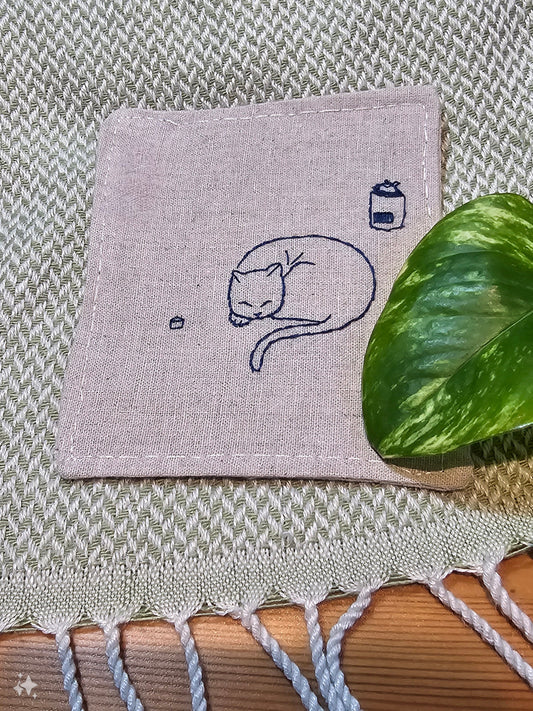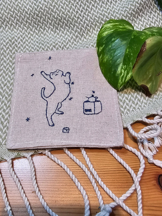 Hand Embroidered Linen Cat Coasters – Chinese Solar Terms, Set of 6