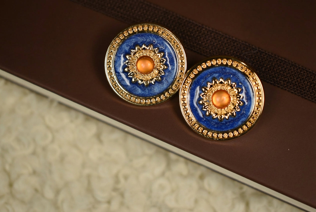 Add a warm touch to your creations with this 20mm Golden Flower Button. Featuring a deep midnight-blue enamel base, a soft golden flower, and a gentle amber glow at the center, this button brings a cottage-inspired charm to any project. Its sturdy design makes it perfect for cozy sweaters, handmade cardigans, bags, and other slow-crafted pieces.