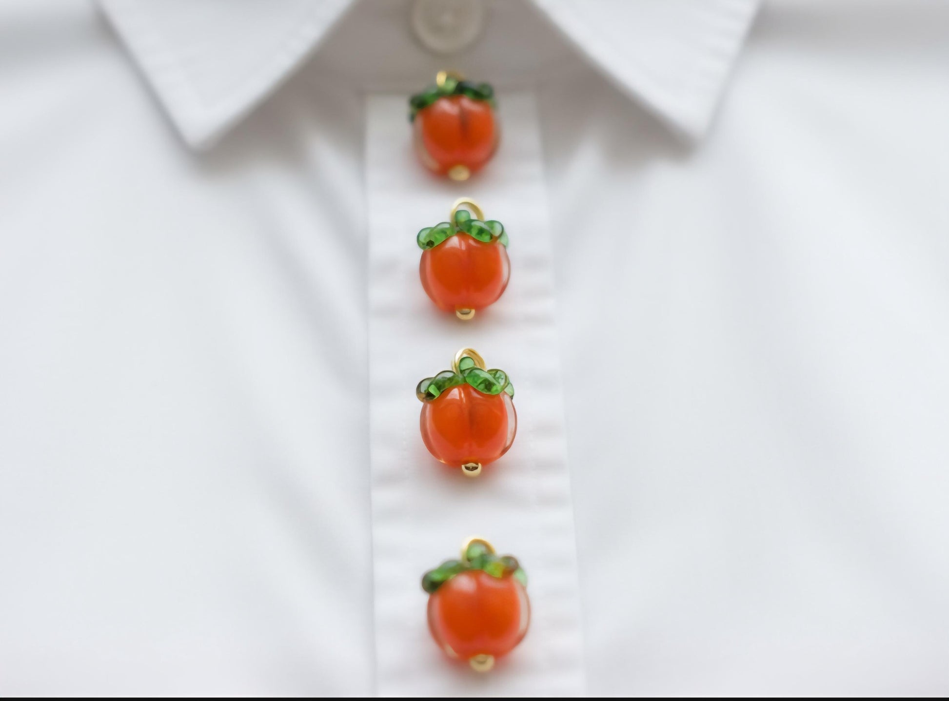 🍊 Persimmon Glass Buttons -Cute Fruit Buttons for Clothing, DIY Crafts, Knitting and Embelishments Bring a touch of sweetness to your projects with these persimmon glass buttons. Each button is crafted from glossy orange glass with a charming fruit design, complete with green leaf detail. Perfect for adding a unique, nature-inspired accent to your sewing, knitting, or craft projects. ✨